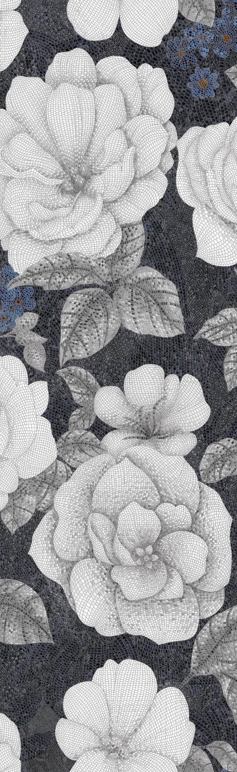 Transform your space with this exquisite sintered ceramic slab, featuring a stunning floral design with elegant blue accents. Ideal for adding a touch of luxury and sophistication to any interior. rich and colorful (blue)
