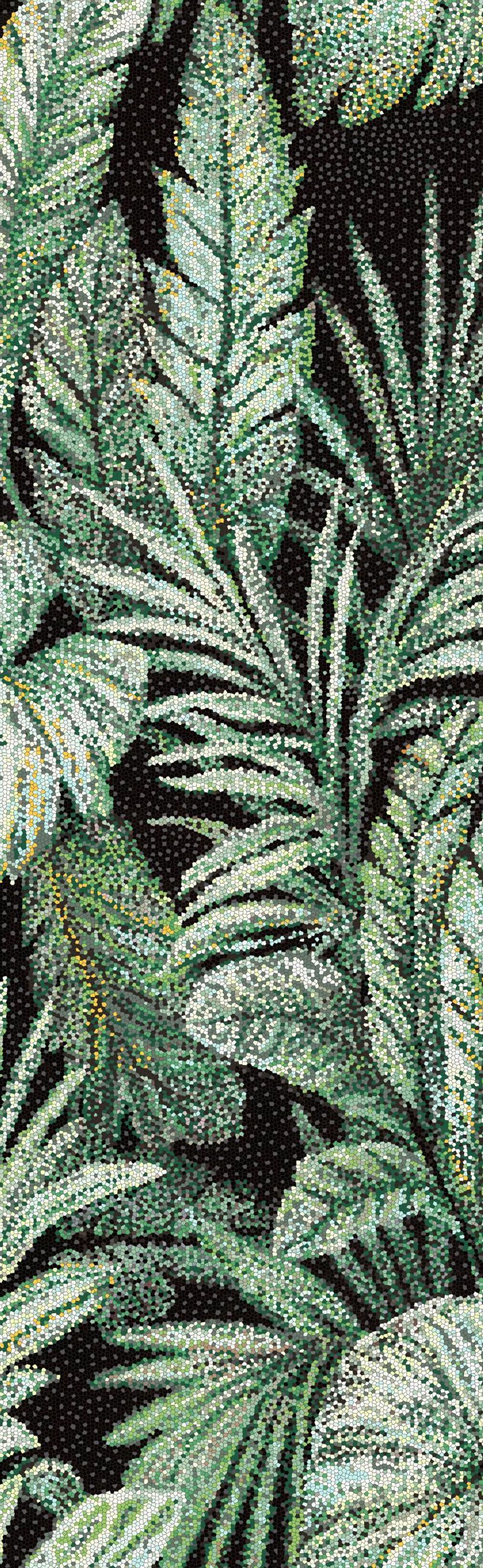 Transform your space with this stunning sintered ceramic slab featuring lush leaf patterns. Ideal for creating a serene and stylish bathroom ambiance. lush foliage (green) - paved