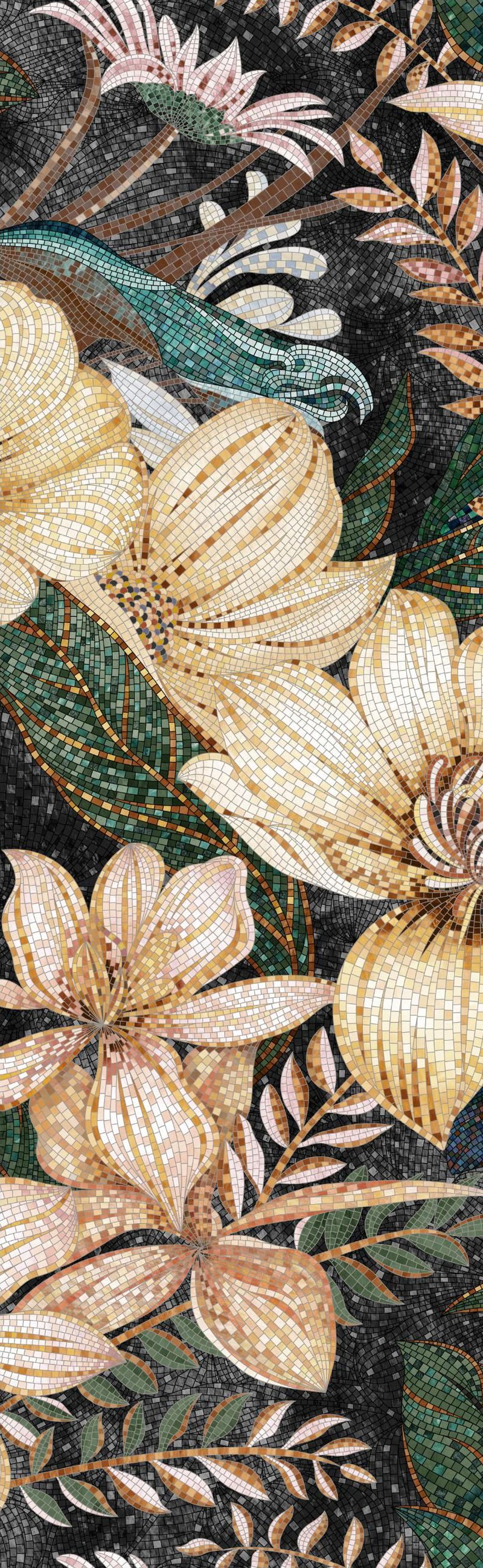 Discover the elegance of this ceramic slab featuring an intricate floral design. Perfect for creating a stunning statement wall in any living space. All flowers bloom (gold)