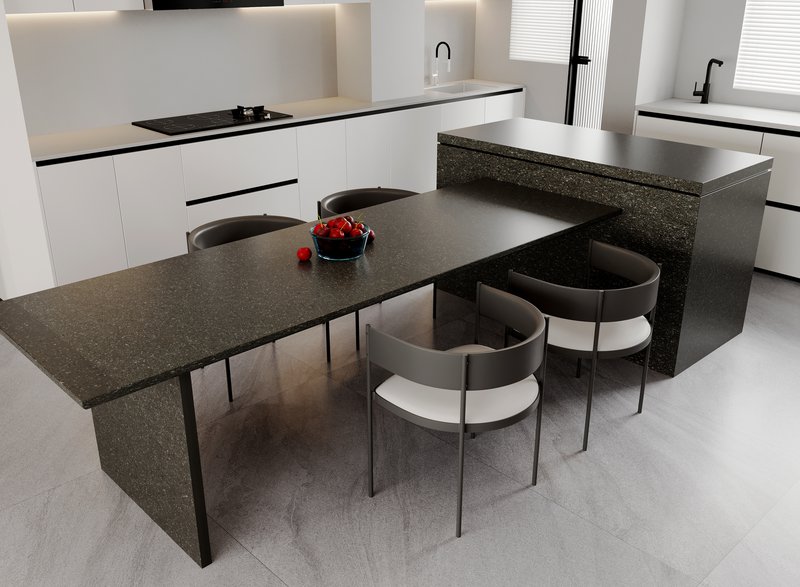 This sintered ceramic slab offers a sleek and modern look, perfect for adding a sophisticated touch to any space. starry sky-black