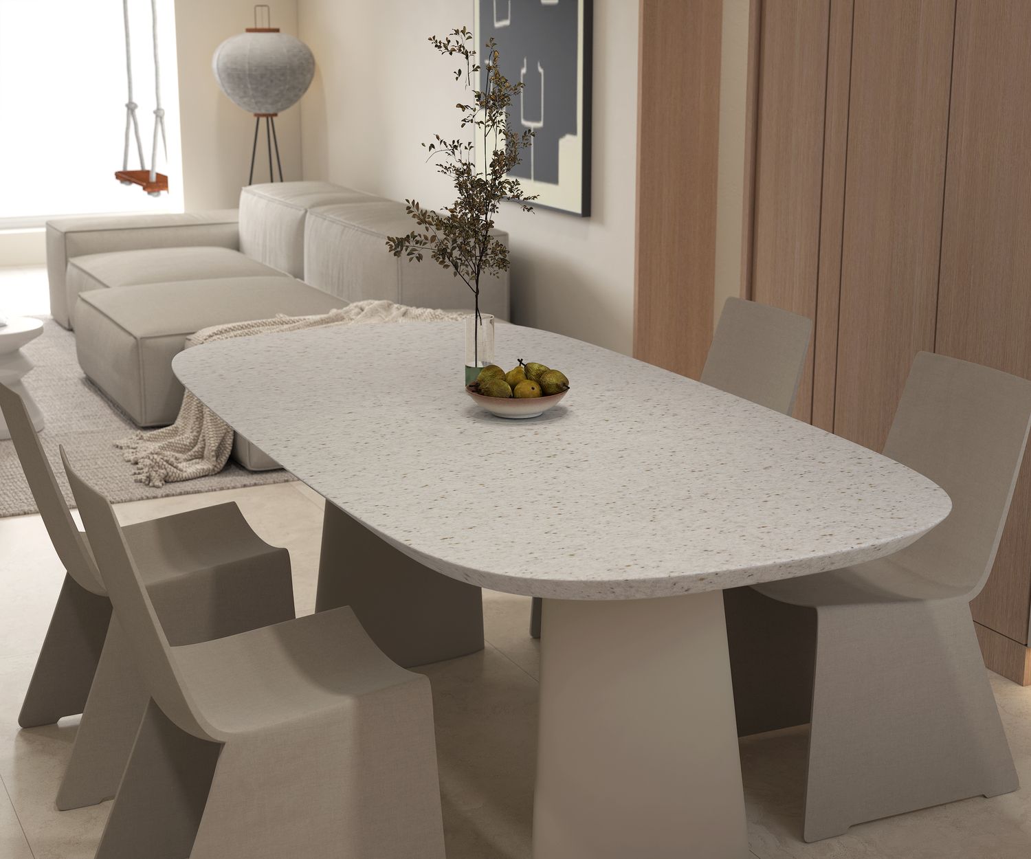 This sintered ceramic tile features a speckled, natural stone-like surface ideal for modern interiors.