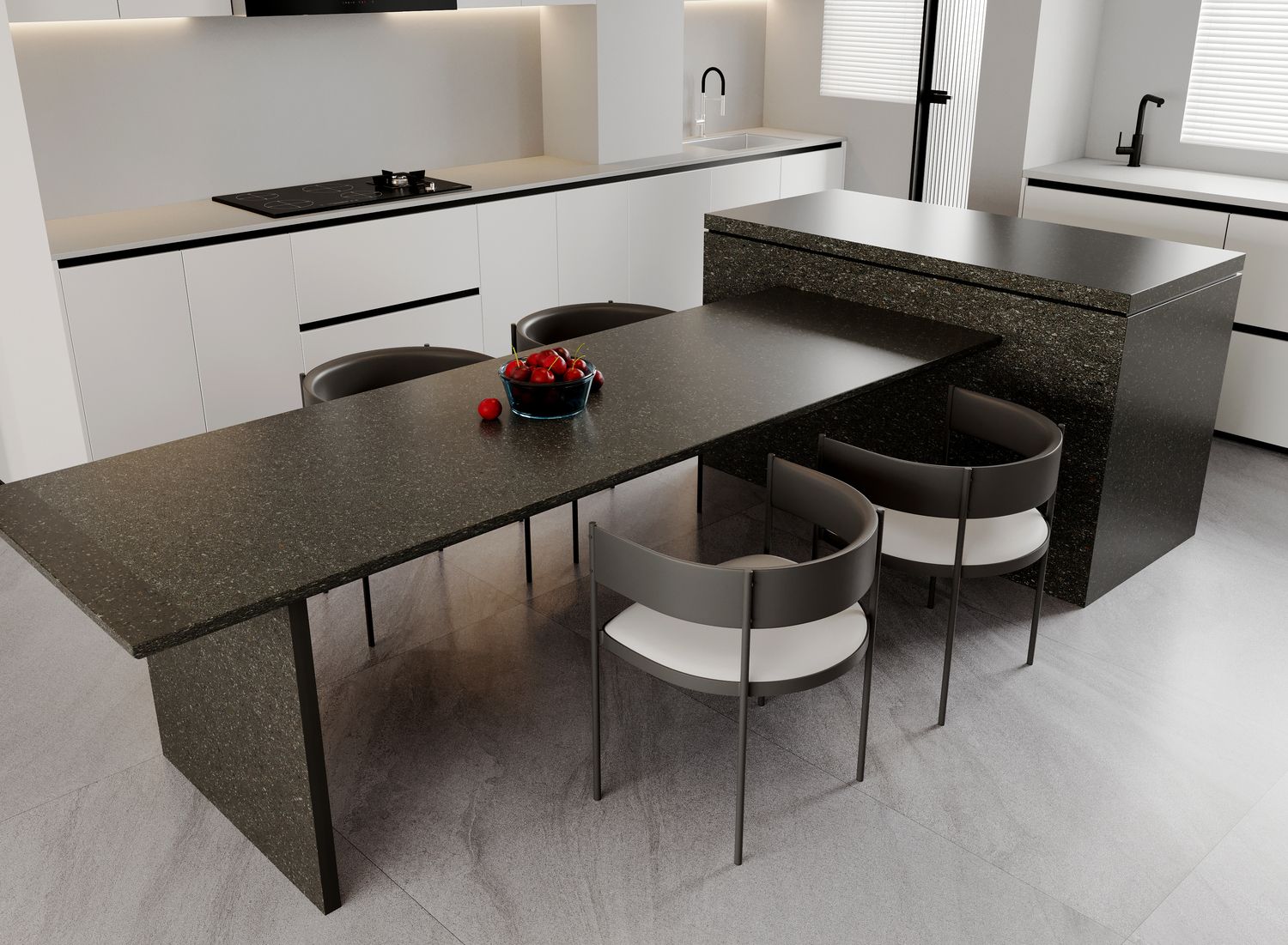This elegant sintered ceramic slab features a dark, speckled texture, perfect for stylish countertops or wall installations.