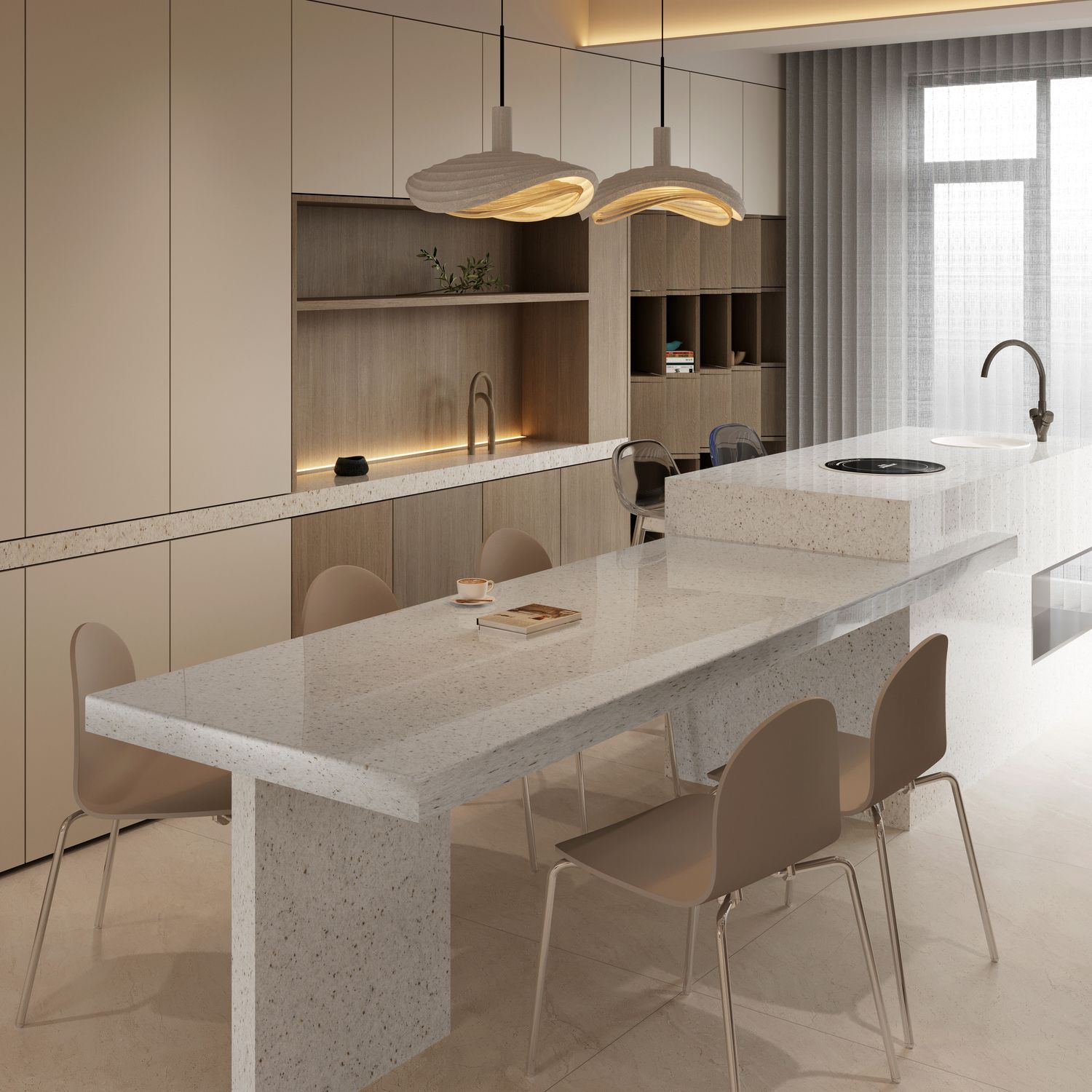 This elegant sintered ceramic tile features a subtle speckled pattern, offering a modern and versatile design suitable for any space.